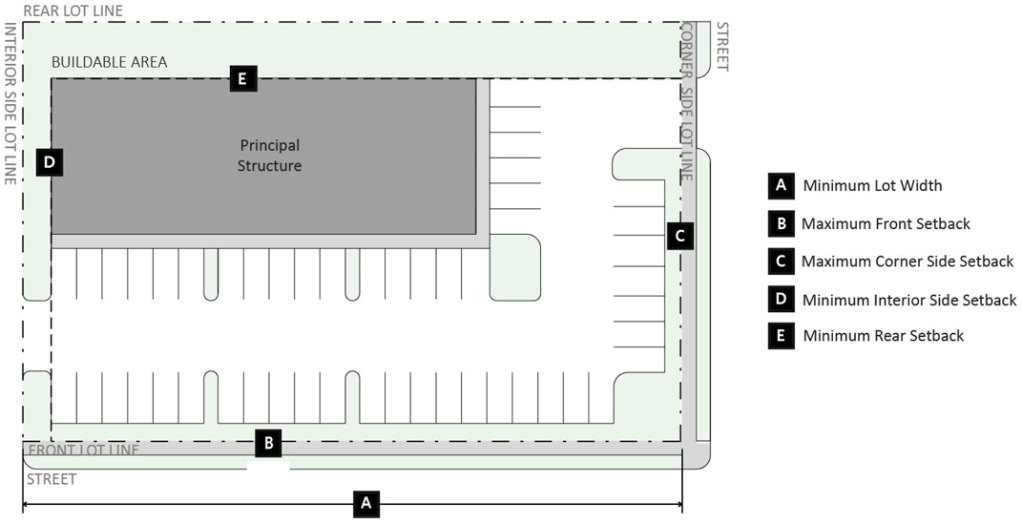 Building setbacks are the required minimum distances structures must be “set back” from property lines.